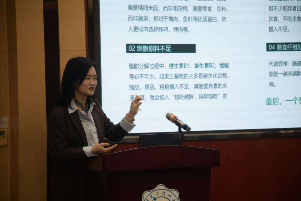 在健康膳食专题环节,田莎以“从舌尖到腰间的膳食革命”为题,系统讲解了健康饮食的科学法则,强调健康是营养均衡与身心和谐的统一,解析七大营养素功能及摄入建议,并分享实用饮食技巧如“53535喝水法”和“三餐搭配黄金比例”,助力师生实现健康与身材双赢。