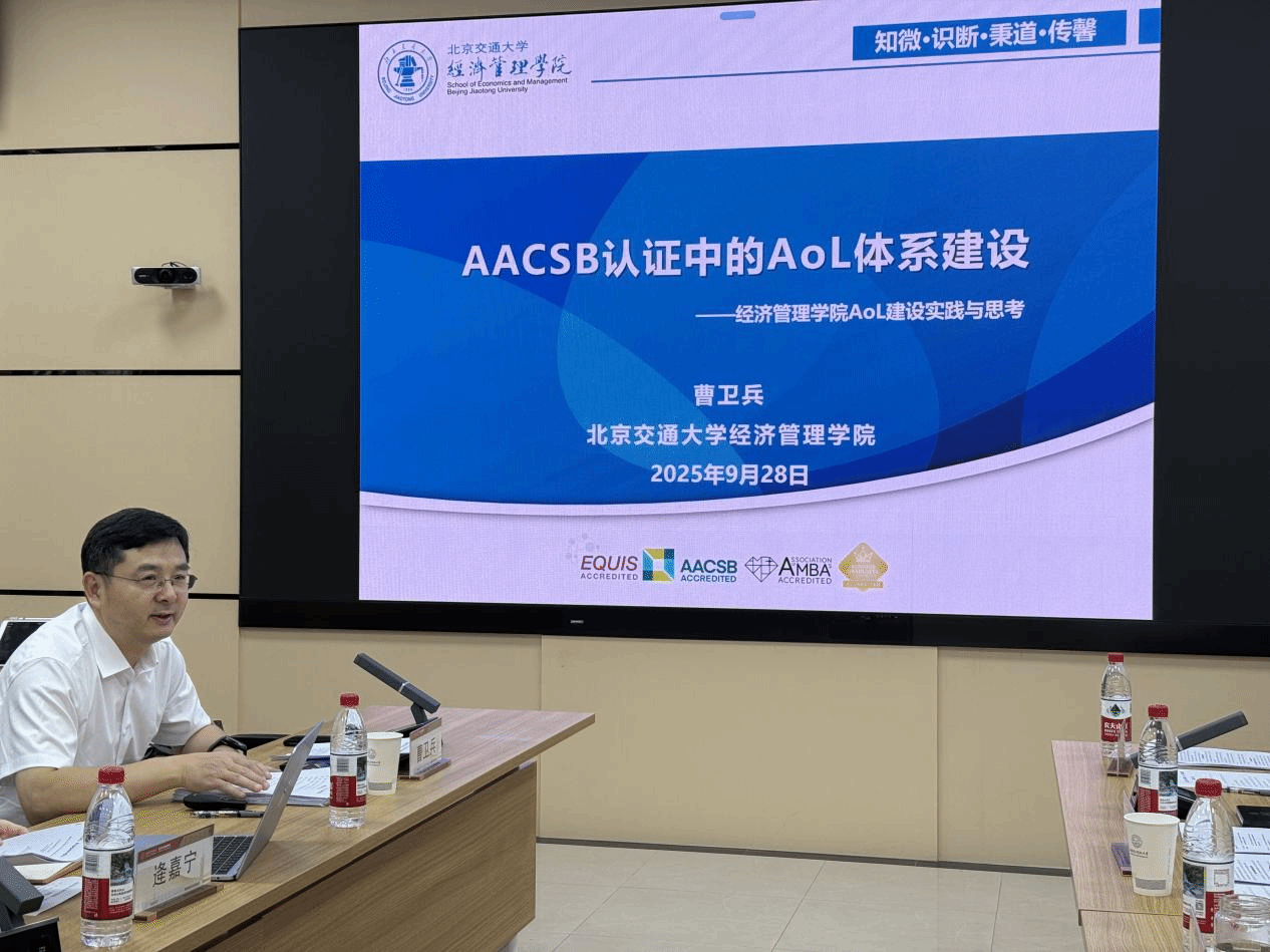 (通讯员 王嫣然)为进一步推进AACSB国际认证工作,明确认证关键环节推进方向,mjm世界杯官网于9月28日举办AACSB认证报告推进会,会议邀请北京交通大学经济管理公司国际事务办公室主任曹卫兵莅临指导,北京交通大学国家经济安全研究院执行经理、公司AACSB指定认证导师华国伟全程线上参会。本次会议为期一天,聚焦认证核心任务开展专题研讨,为公司认证工作注入专业力量。