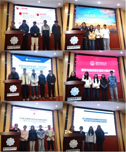 随后,各学习小组围绕战略管理理论、组织理论、领导者理论、社会公民理论、员工激励理论等主题展开深度研讨。第一组聚焦医疗战略管理理论,梳理医疗1.0至4.0时代的理论演进脉络,重点突出中国特色与AI时代背景下的理论创新,并提出具备参考价值的未来研究方向。第二组以生态系统视角的战略管理理论为核心,系统梳理其多学科理论渊源,结合“外卖大战”典型案例,深度拆解价值共创的底层逻辑与生态构建的关键路径。第三组聚焦组织理论的核心跃迁,梳理从韦伯科层制到穆胜平台型组织理论的演进逻辑,结合数字化时代企业组织变革实例,剖析传统科层制的局限与平台型组织的核心优势。第四组追溯领导风格理论的发展历程,阐明从特质理论到行为理论、再到权变与情境理论的范式演进脉络,同时聚焦服务型、变革型、悖论式、平台型、创新型等前沿领导风格,为该领域研究提供探索方向。第五组剖析企业公民理论自20世纪60年代以来的发展历程,结合经典文献和企业实践案例,清晰揭示各阶段理论核心观点、文献支撑与实践特征,重申当代企业在数字化时代履行公民责任的重要价值。第六组厘清货币与非货币两类激励理论的发展脉络,一方面剖析传统货币激励的机制局限,探讨股权激励等现代工具的应用拓展;另一方面追溯非货币激励从满足心理需求到适应虚拟工作情境的理论演进。