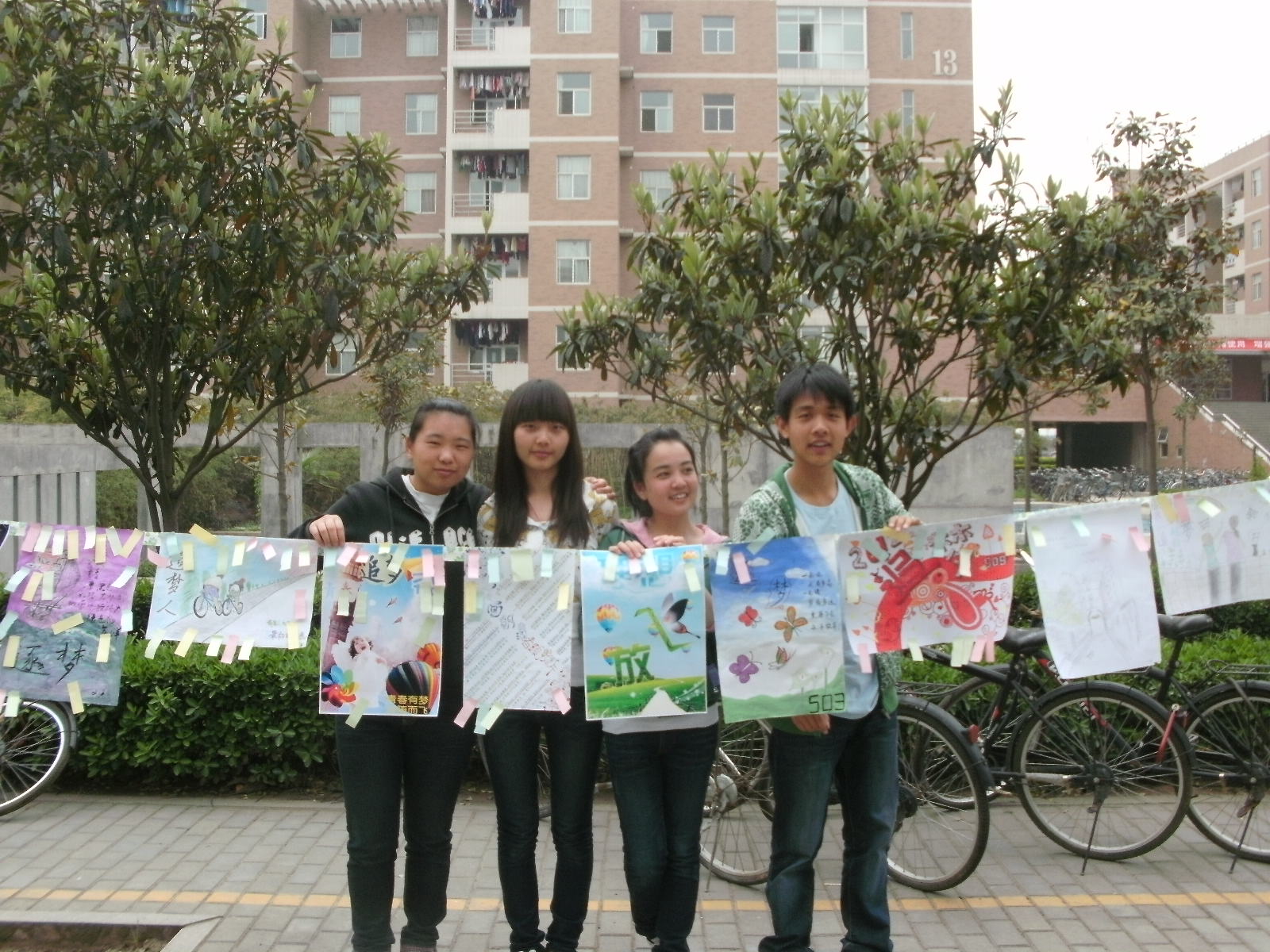 由经济管理理公司员工会主办、宣传部承办的“追梦”创意海报大赛于2012年4月14日在新校区丁香宿舍楼前进行评比选拔。