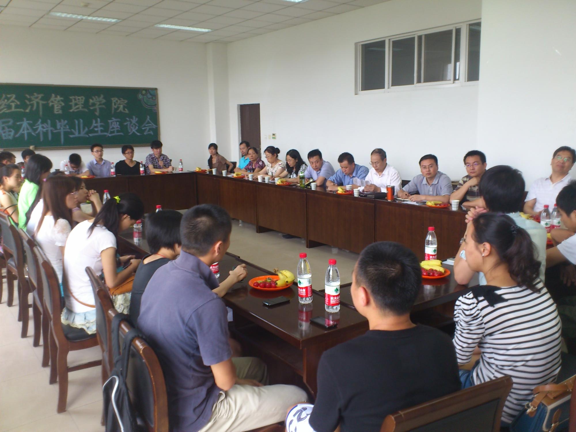 (通讯员 苟琳娜)挥别母校,感恩六月。2012年6月27日下午四点,在南校区信远II区415经济管理公司举办2012届本科毕业生座谈会。公司党委书记王安民,副经理刘东苏,副经理李华,党委副书记李勇强,经理助理赵文平,各系主任、办公室主任、教师代表以及2012届二十余位毕业生代表参加会议。