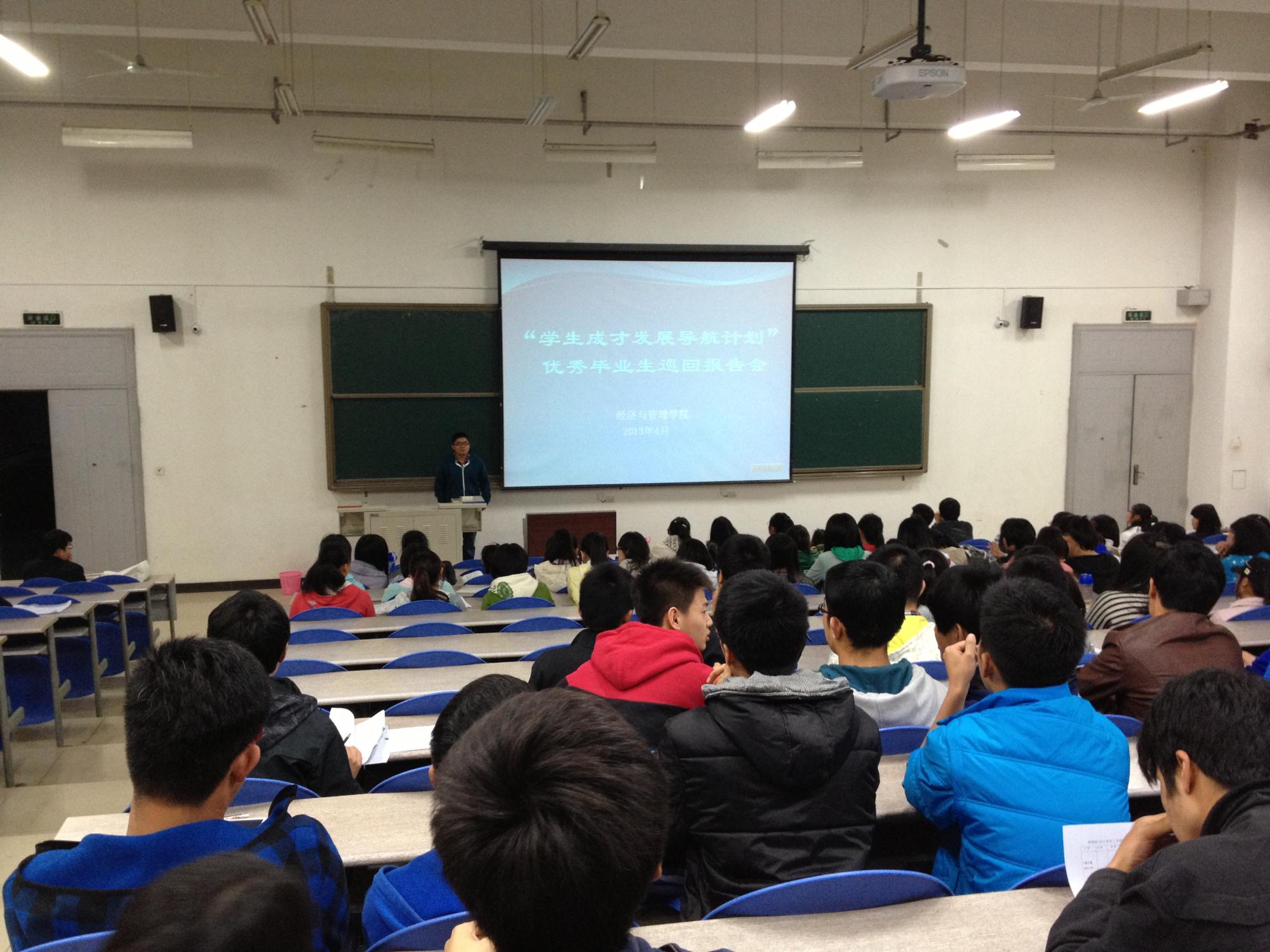 4月20日晚7点,mjm世界杯官网在B-538举办第一场优秀毕业生巡回报告会,2012级辅导员苟琳娜、毕业班优秀毕业生汤强及全体2012级员工参加了此次活动。报告会题目是“我的大学我的梦”。