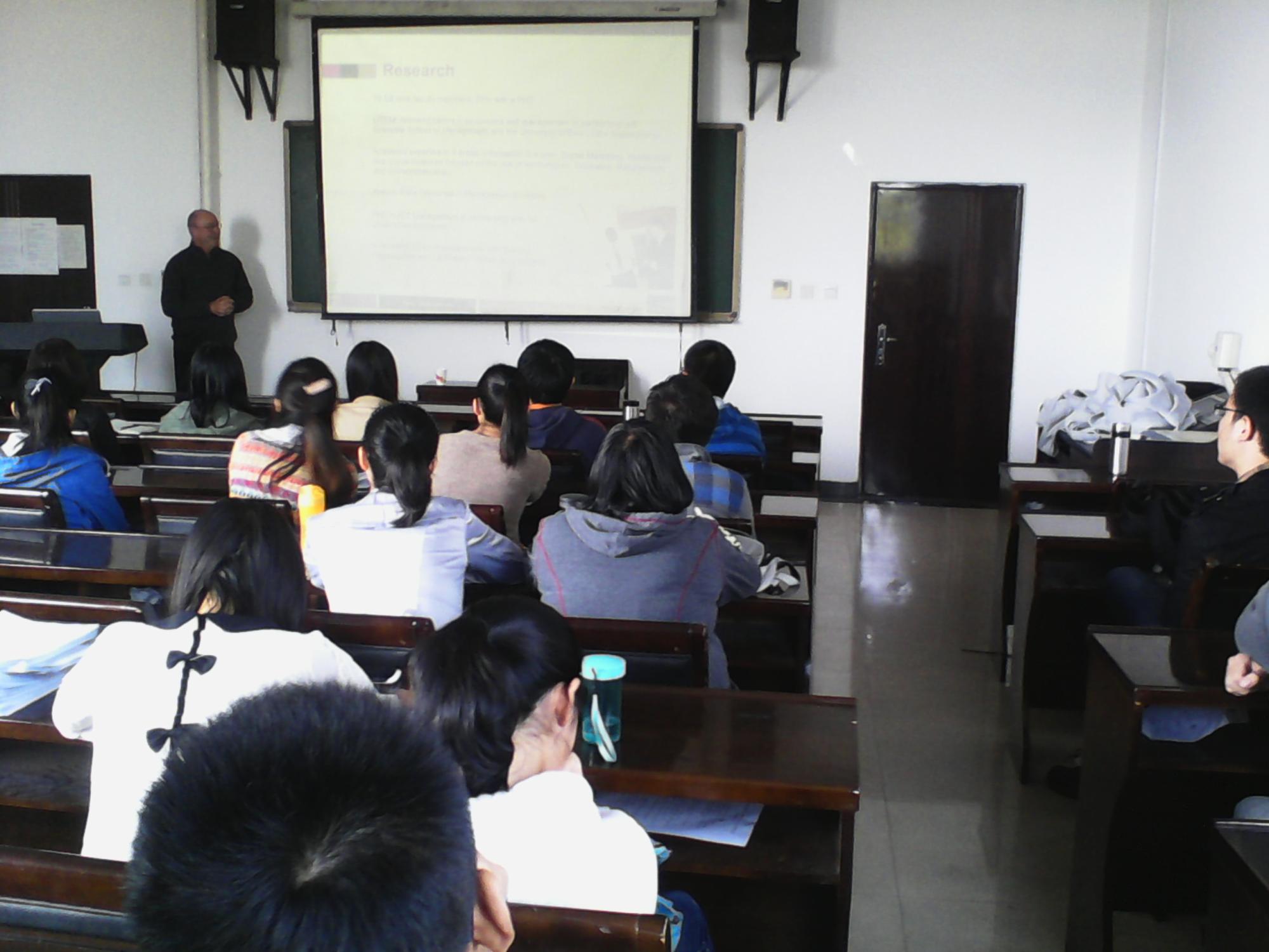 在信远楼报告厅,Pierre Vialle教授为公司研一和大四员工详细说明了双硕士的项目实施与申请程序,回答了同学们感兴趣的问题。随后,Vialle教授对部分同学进行了初审和面试,并与公司部分教师教师进行了学术交流,就双边教师科研合作的方式与方法进行了讨论。