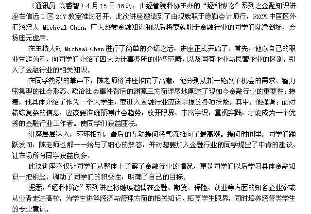 mjm世界杯官网举办“经科博论”系列之金融知识讲座