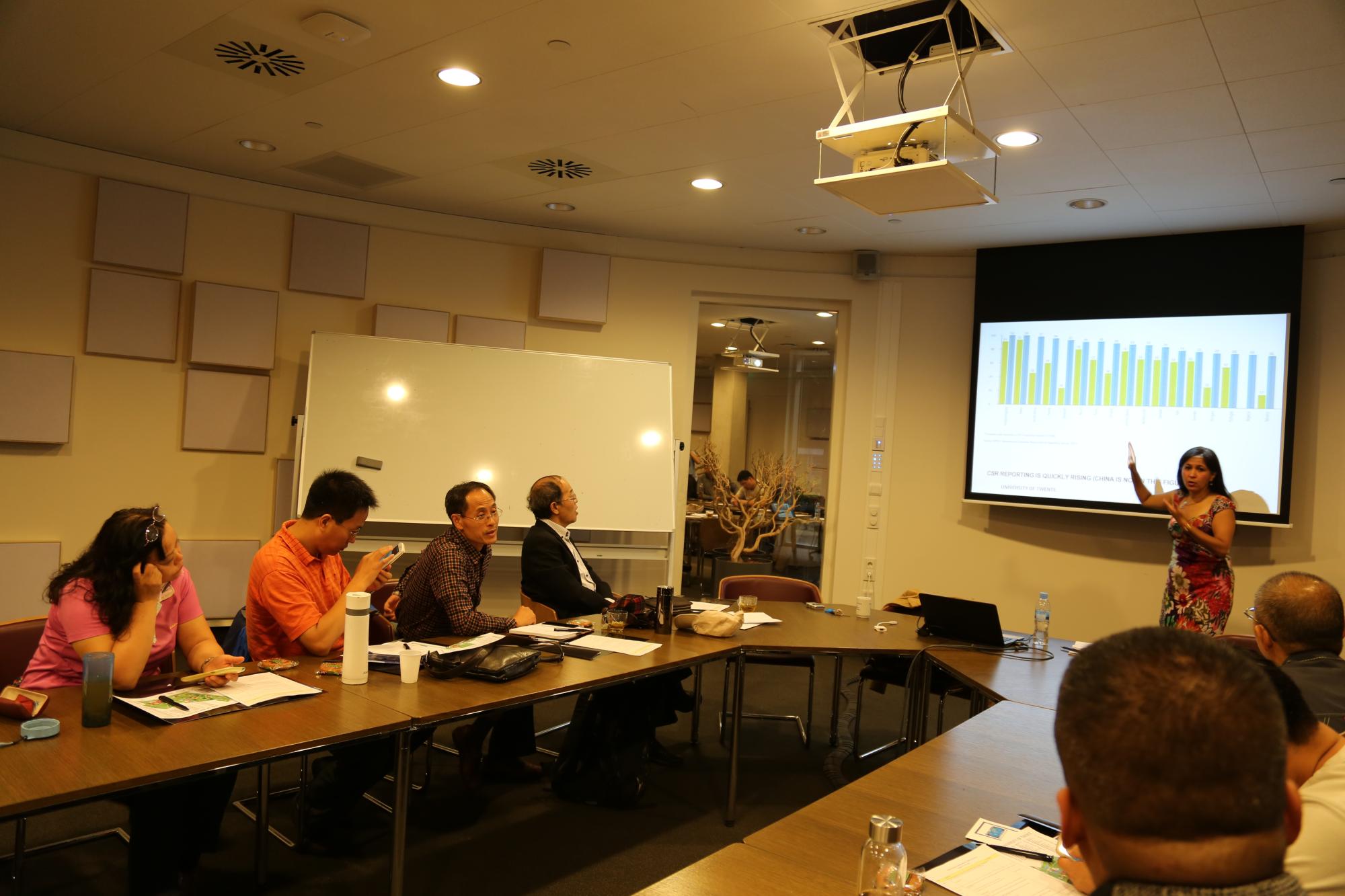 在屯特大学的拓展活动分为专题讲座与企业实践两个单元。8月18日,在荷兰屯特大学Ravelijn管院大楼会议厅举行了开团仪式与专题报告会。第二阶段的企业实践与拓展活动分别于8月19日、20日和21日三天进行,全体成员分赴Twence Faciory、Cogas company and Kringloop Factory进行实地考察,参观了生产与管理现场,并与相关管理人员进行了交流。课程结束后,王安民经理与屯特大学管理公司CSTM中心主任Hans Bressers教授及中心相关人员,就双方科研和教学合作事宜,进行了座谈和交流。