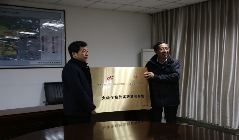 会谈期间,双方签订合作协议,并共同为“美加墨世界杯官网-蔡家坡经开区管委会校外实践教育基地”揭牌。李建东一行还参观考察了园区的整体规划,及园区主要企业。公司教务处、mjm世界杯官网等单位陪同调研。