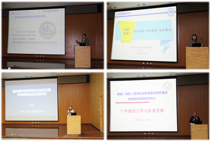 在下午的议程中,中国科学技术信息研究所郑彦宁教授做了题为“技术监测与预判的探析”的报告;陕西省科学技术情报研究院张薇研究员做了题为“从知识服务到智库服务的实践探索”的报告;西北大学崔旭教授做了题为“国内图书馆学科热点演进及研究范式的转型”的报告。