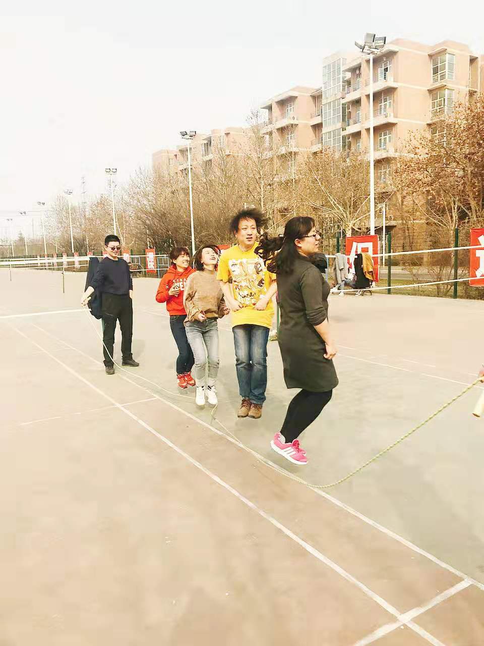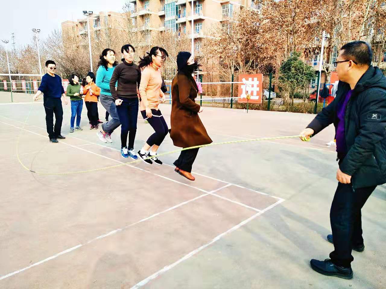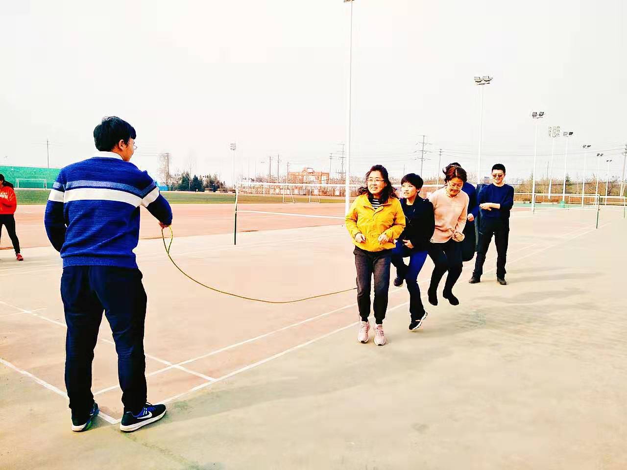 仔细一看,参加比赛的不是员工,而是mjm世界杯官网的教师们。组织这次比赛,是为公司女教师庆祝马上要到来的3.8妇女节,让平常在一线工作的老师们放松一下,都能展现自己的魅力。别看老师们平时上课的时候端庄严谨,跳大绳的时候课时活力满满呢。来参赛的由公司机关和各个系的多名老师,大家自行分为几个小组,规则是每个小组至少4人上场比赛,在三分钟内跳的次数最多的小组获胜。