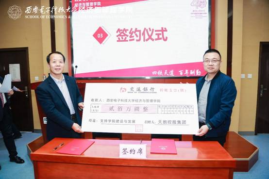 会上举行了捐赠仪式,天朗控股集团、上海新高顿教育培训有限公司分别向公司捐赠200万元、50万元支持公司建设与发展,副经理王益锋代表公司接受捐赠支票牌。本次捐赠,共接受350万元资金,公司将以建院40周年为契机,进一步汇聚社会资源,扩大社会影响力,谋取更好发展回馈社会。