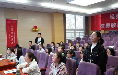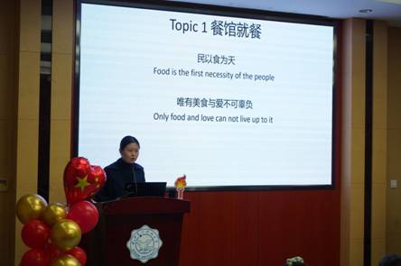 启动仪式后,李菁带领大家开始了项目的第一个子项目——情境“英语角”活动——的第一次活动。她从餐馆就餐入手,模拟现实情境引导大家培养提高口语能力,穿插对于四六级考试、雅思、托福考试都很重要的英语语法讲解。她的认真、幽默和博学让大家折服,她也以各种方式鼓励大家多说多练,以英语为语言媒介带领大家感受英语口语的独特魅力。伴随着角色扮演、幸运转盘大抽奖等趣味活动,师生们积极进行口语互动,即使是一开始有点小紧张的同学,最后也都能做到在课堂上积极发言,热情参与,并在游戏和活动中真正锻炼了自己的口语表达能力。
