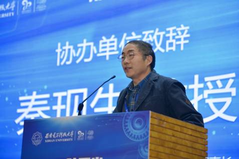秦现生代表协作单位致辞,希望各高校能够不断加强工业工程专业建设,在各高校的协同支持下把此项赛事办成精品赛事,促进工业工程人才全面素质提高和创新精神与实践能力培养,并预祝大家取得优异成绩。