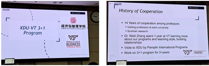 在经过多方接触之后,西电经管公司已经和美国弗吉尼亚理工大学庞普林商公司(Pamplin College of Business at Virginia Tech)建立了密切的院际合作关系。在多方长期努力之下,我们已经达成和两家美国商公司的实质性合作意向,在2018年签署了校际合作协议。