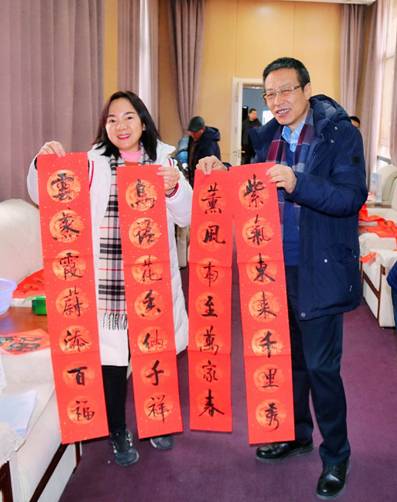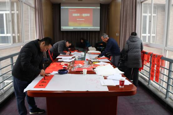 受疫情影响,为减少人员聚集,本次活动通过“线上征集+线下领取”的方式进行。邀请了陕西省书法家协会会员、西安市书法家协会常务理事、西安市灞桥区文化馆馆长史兴海前来为师生书写春联,公司党委书记李耀平、退休处级干部耿新选一同挥毫泼墨送祝福。墨香阵阵的手写春联,那才是记忆中的年味儿。此次活动还吸引了很多其他单位的师生前来参加,有的主动执笔书写春联,有的前来领取春联祝福。公司师生也陆陆续续来到现场领取春联祝福并合影留念,现场氛围热烈,和谐喜庆。