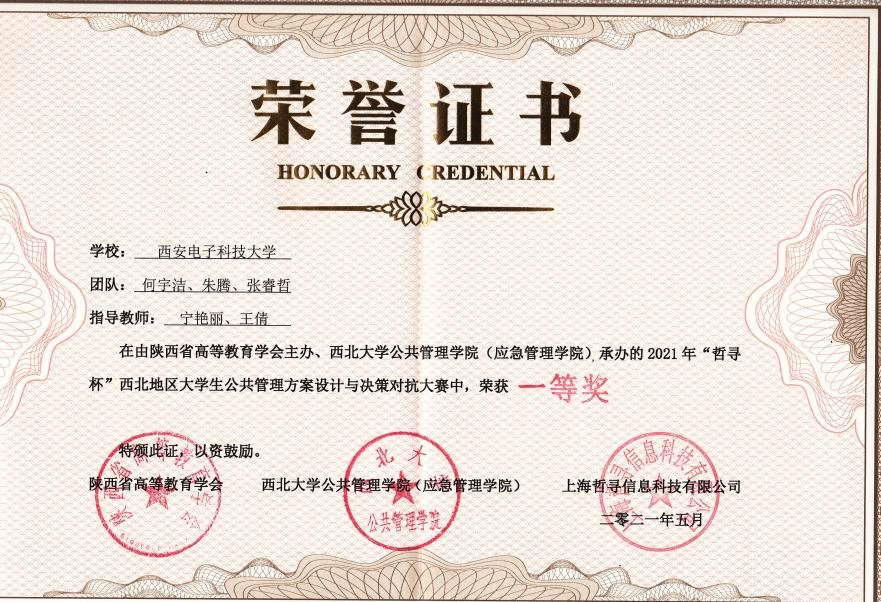 来自西北地区的西安交通大学、兰州大学等37所高校的38支队伍的近200名师生参加了比赛。大赛由公共管理方案设计、决策沙盘对抗和现场团队答辩三部分构成,经过一天半的角逐,mjm世界杯官网参赛队伍(18级行政管理专业何宇洁、朱腾、张睿哲)获得一等奖。