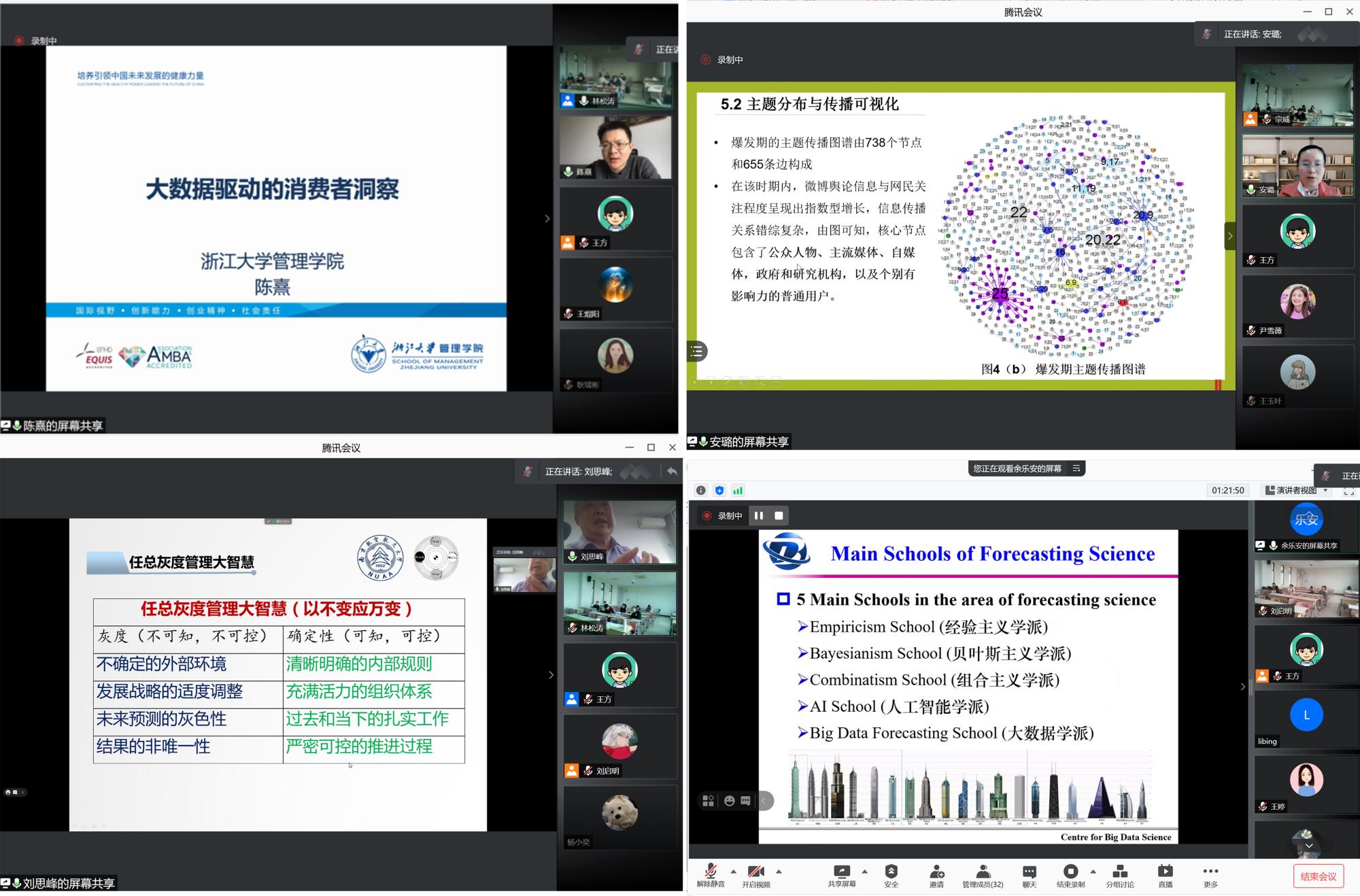 根据“课程思政”建设需要,该课程组设置了“大家进课堂”环节,邀请“大数据”“小数据”及“网络数据”分析领域的国内知名学者为研究生授课,多途径培养员工的“创新精神”“科学精神”和“家国情怀”。