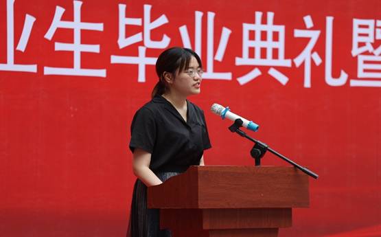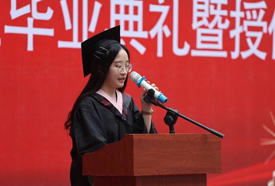 2018级本科生周晟欣同学作为在校生代表向学长学姐表达祝福与感谢。还记得2018年那个初秋,作为迎新志愿者迎接与帮助她来到西电的学长学姐们;记得语言协会辩论队带她早训和打比赛的学长学姐们;记得每到学期末总是把课本和笔记本倾情相送的学长学姐们。一届一届互相关照的传承让人温情满怀。她真诚地祝愿学长学姐们永远有着追梦逐风的骁勇,果敢温柔,优秀善良。纵有千古,横有八荒,前途似海,来日方长!