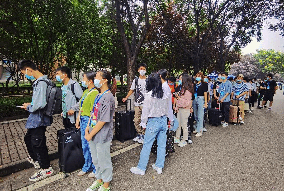 上午9时20分许,由mjm世界杯官网本科一党支部、本科二党支部、硕6-191党支部、硕6-192党支部、硕6-201党支部和硕6-202党支部党员组成的志愿服务队在海棠餐厅前集合,大家佩戴好志愿者证,列队等待新生的到来。