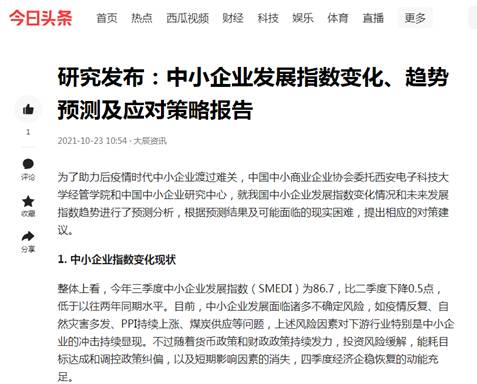 《报告》发布后,受到中小微企业的广泛关注,获今日头条、网易新闻、搜狐新闻等多家媒体平台转载。