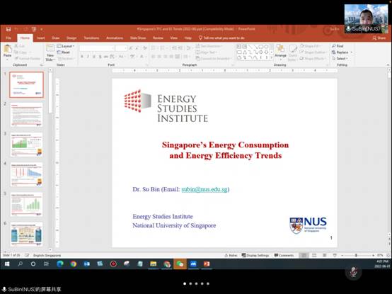 (通讯员:王姣艳)2022年6月1日下午,公司应用经济学科举办了第一期能源与环境研究前沿论坛,论坛邀请到新加波国立大学能源研究所资深研究员苏斌作为主讲嘉宾。通过腾讯会议在线平台,苏斌研究员作了题为“Singapore’s Energy Consumption and Energy Efficiency Trends(新加坡能源消耗和能效发展趋势)”的学术报告,线上线下参会师生达六十余名。