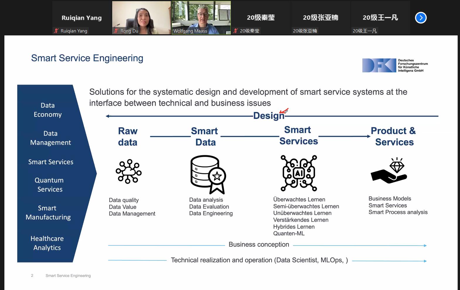 报告会上, Wolfgang Maass教授指出基于商业行为者存在不愿参与数据共享,但有兴趣获得外部数据的问题,分享在"缺乏信任"的条件下促进代理人之间基于合约的数据集交换、交易和处理的解决方案,为研究生提供更多前沿的学术研究与解决思路。