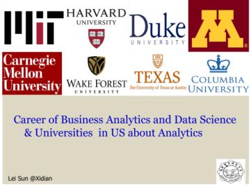 孙蕾为同学们分别就专业相关的未来职业、商业数据分析、数据科学专业相关的优秀美国大学列表、国内外热门可就业公司等方面做了系统阐述。所有讲解都是结合实例进行,对数据产品经理、数据分析师这样的代表职位在亚马逊、京东等国内外知名公司的岗位描述和岗位规范举例,让大家对于专业就业环境、的特点有了明晰的认知,也让员工明白了如何把自己打造成就业市场目标就业岗位所需要的人。