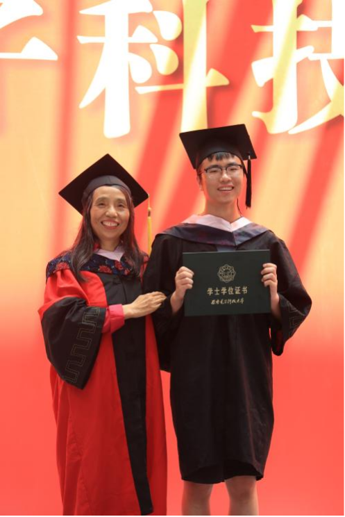 授位仪式上,院领导和导师代表为毕业生逐一拨正流苏并授位,全体毕业生依次上台接受授位并合影留念。握手、拨穗、合影,短暂的几秒珍藏进相册,承载着四年时光的点点滴滴,流转光阴浮现眼前。对于每位到场的毕业生而言,这不仅是一场仪式,更是成长路上重要的里程碑。
