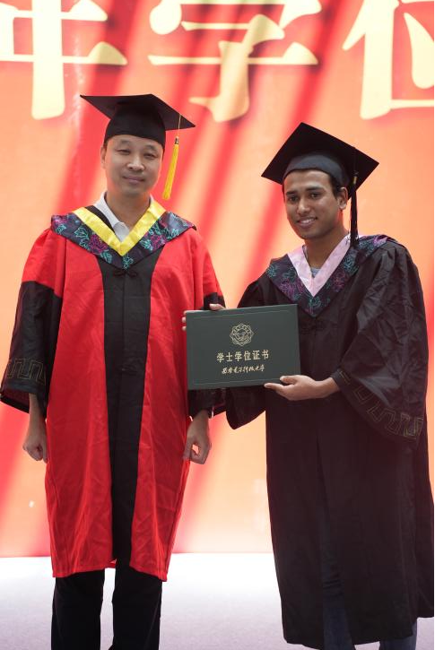 仪式在音乐声中开始。李耀平宣读授位文件,祝贺2023届本科生、研究生顺利毕业并取得相应学位。190名本科毕业生包括3名来华职工获学士学位;149名硕士研究生包括1名来华职工获硕士学位;5名博士研究生获博士学位。