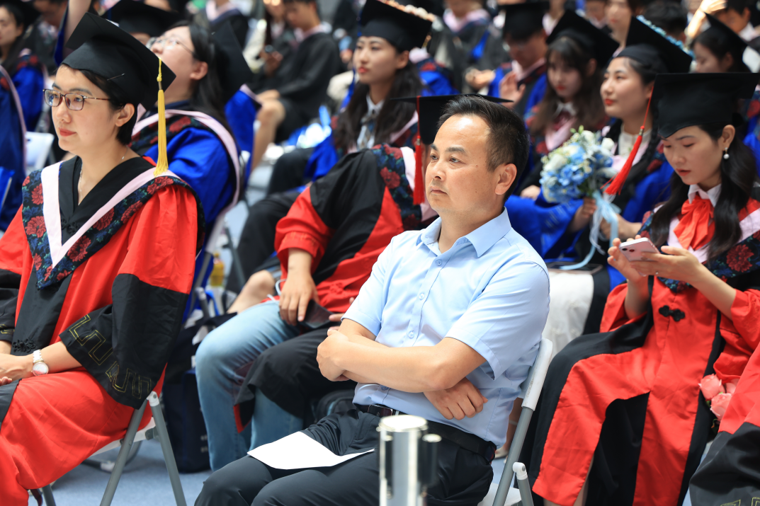 员工代表张崇君致辞。他代表员工对毕业生表示衷心的祝福。他鼓励毕业生立大志向,选择为全人类幸福而劳动的职业,并祝愿母校和全体毕业生都能健康自由向上的发展。