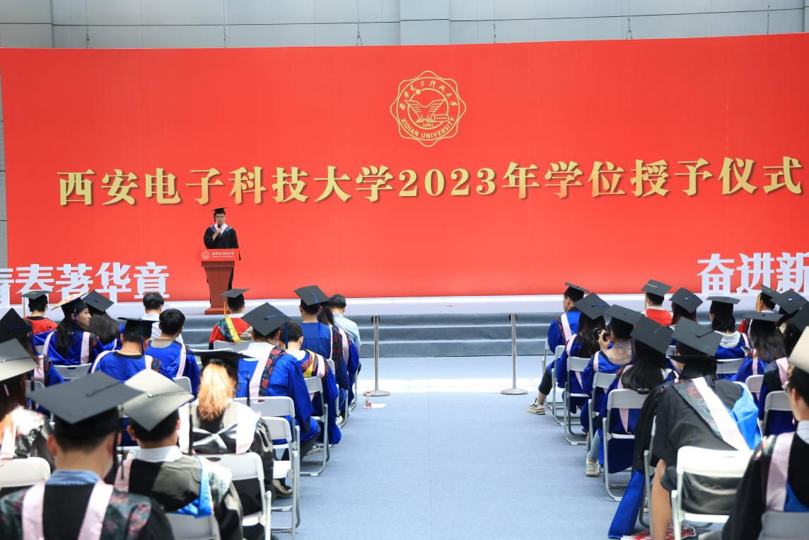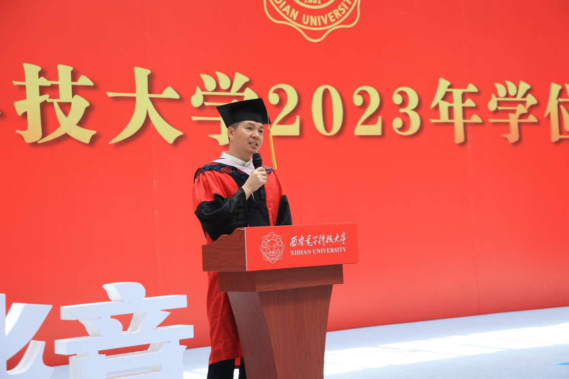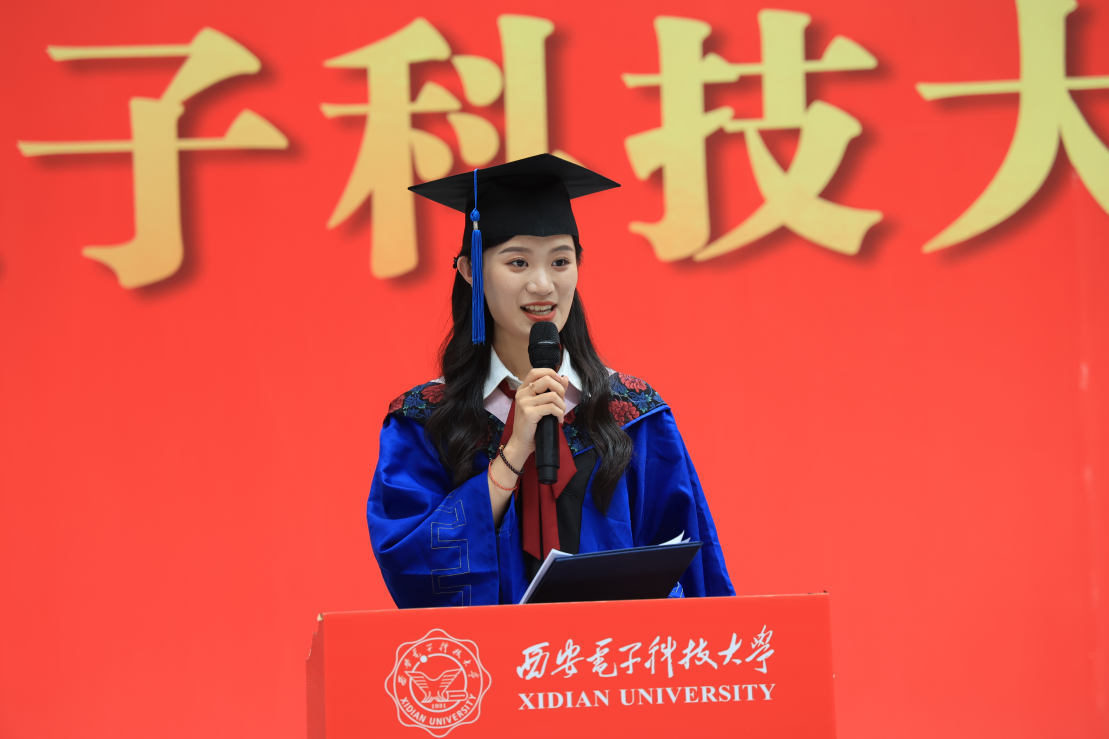 2023届金融学专业硕士毕业生牛津晶同学代表研究生毕业生发言。她回望了自己三年来在西电每个角落留下的痕迹,回顾了三年的收获,呼吁毕业生做有智慧有激情的人,做胸怀大志并脚踏实地的人,做富有责任并勇挑重担的人,做不畏艰险、追求卓越的人。最后,她为老师和学弟学妹们送上了祝福。