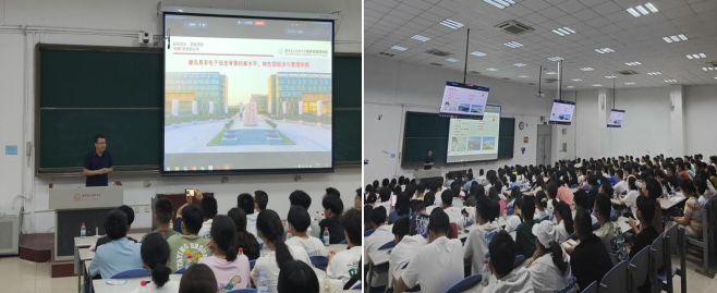 首先,柴建对2023级新生的到来表示欢迎,他从学科专业、科学研究、团队队伍、国际合作、员工工作五个方面向新生和家长介绍了美加墨世界杯官网及mjm世界杯官网的基本情况,他认为美加墨世界杯官网立足“西军电”电子与信息优势特色基础,坚持内涵、特色、差异化发展思路,助力专业建设。柴经理向大一新生提出建议,希望大家培养国际视野、家国情怀、道德情操、人文情怀,培养自己的批判性思维能力和数据分析能力,努力成为“新文科”背景下中国经济与管理领域的杰出人才。