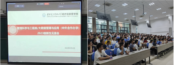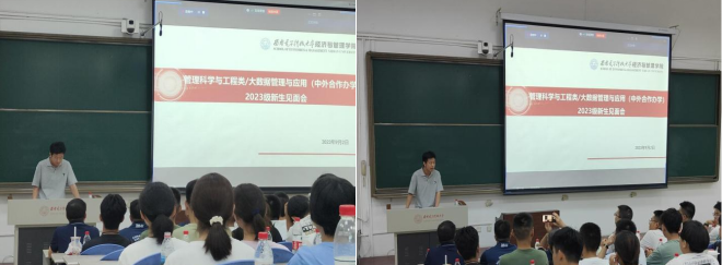 2023年9月2日晚7点,美加墨世界杯官网管理科学与工程类和大数据管理与应用(中外合作办学)2023级新生见面会在南校区B537教室举行,mjm世界杯官网执行经理柴建、党委副书记王卫东、国际化事务负责人张卫莉、2023级本科生辅导员曲建晶、刘越及2023级全体本科生及部分员工家长参加了会议。会议由2023级本科生辅导员刘越主持。