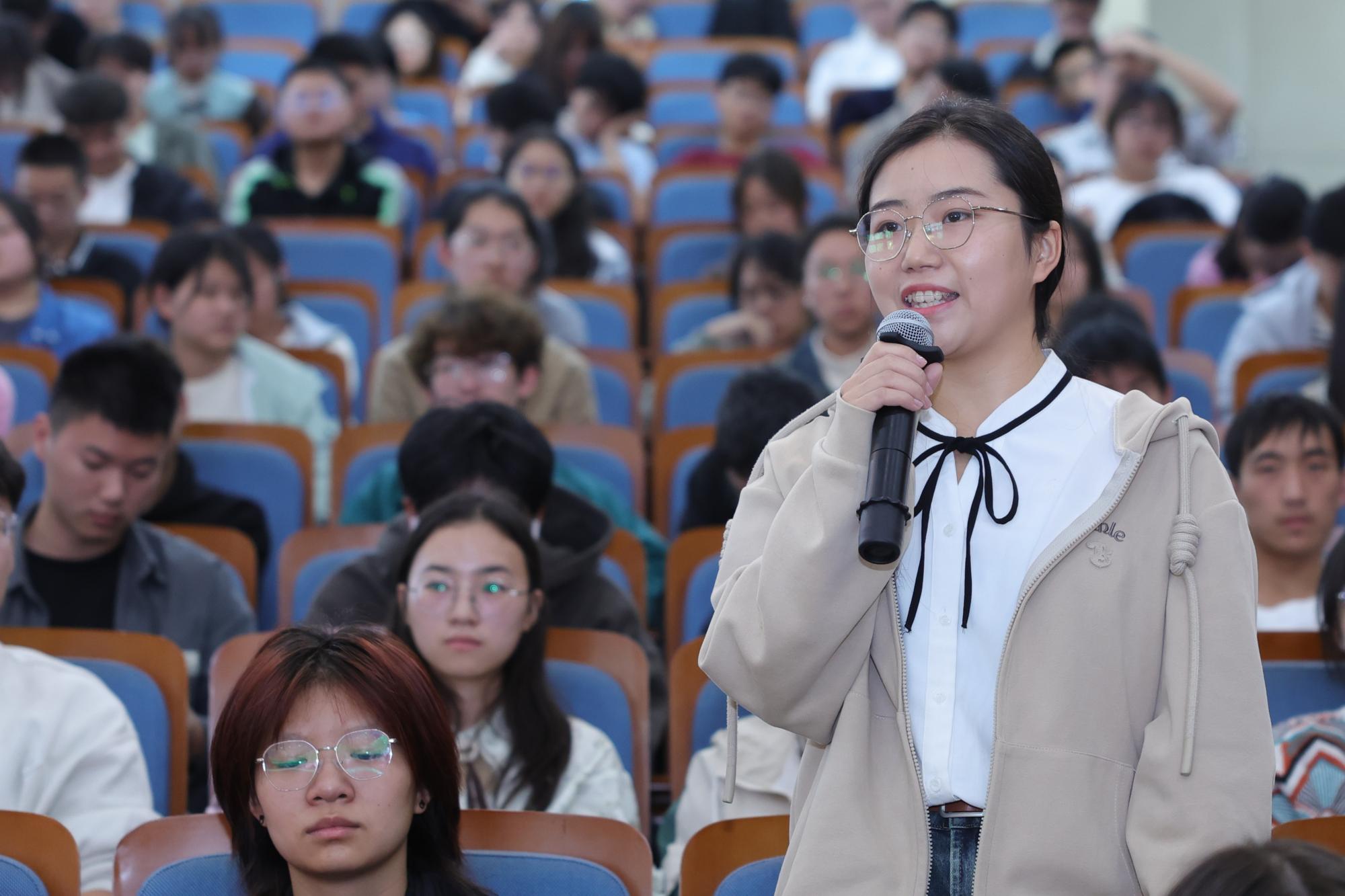 在主题报告会后,同学们积极提问。就“在当前经济形势下,老员工是否应该直接创业?”、“老员工活应该如何规划?”等问题,钱永贵结合自身经历勉励大家最好先到创业中去学习,积累经验后再创业,将创业融入时代浪潮,让创业推动国家和社会的发展,在机会来临之前,要规划好老员工活,加强学习,明确目标。大一员工就自己的迷茫向韩鹤林提问“如何笃定选择支教梦及如何规划准备?”,他鼓励同学们要有“好奇心”、“学习力”和“修炼心”,深层热爱、持续学习、加强修炼,这才能成为一名优秀的支教人。