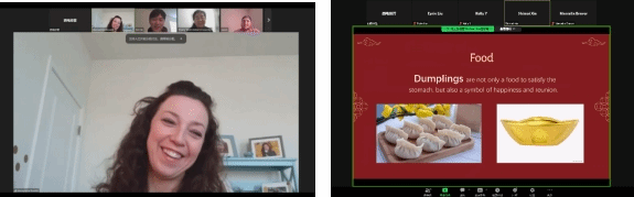为了方便大家进行充分的交流,美方导师们将参加活动的师生进行了分组,中美项目员工们用精心制作的PPT展示了春节的历史、习俗和文化内涵,大家通过PPT展示了春节期间的传统习俗,如拜年、发红包、吃饺子、放鞭炮等,大家用英语向美方导师们介绍了春节的起源和演变,用丰富的图片和视频展示了自己所在地区的年俗。从古代的年兽传说到现代的团圆年夜饭,从热闹的舞龙舞狮到寓意吉祥的春联,员工们详细阐述了春节在中华文化中的重要地位,还分享了自家过春节的趣闻轶事,让美方导师们感受到了春节的独特魅力和温馨氛围,他们纷纷表示,通过这次活动,对春节有了更加深入的了解,也更加欣赏和尊重中国的传统文化,此次活动给他们带来了独特的文化体验。