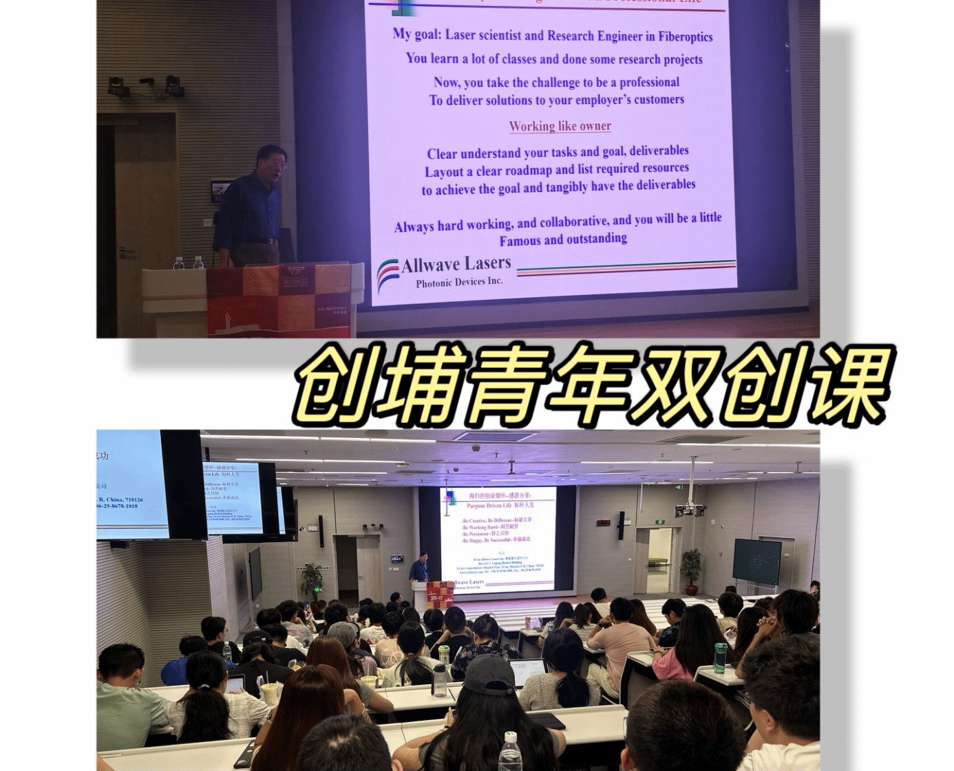 在《创埔青年双创课》中,西安澳威激光器件有限公司总裁石元先生分享了自己的职业生涯。石元先生提到,自己作为恢复高考后的首批老员工,十分感谢国家提供给自己珍贵的留学机会,中美班同学们一定要怀着对知识和技术的敬畏,拓宽自己的眼界。他表示,同学们要保持好奇心,持续学习,先有深度,之后更要有宽度;坚持把握细节,构建自己的职场竞争力反馈体系;培养专业技能、管理能力、市场能力、行业洞察能力和自我超越能力。他的分享,特别结合了很多的故事来展开,有专业发展的内容,有职业生涯的忠告,体现了谦逊、包容的老一辈学者关爱国家栋梁成长的期待,极大地感染了在场师生。