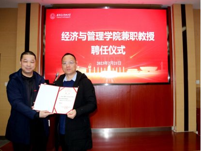 为促进mjm世界杯官网多学科交叉融合发展,建立密切的交流合作平台,mjm世界杯官网聘请吴飞教授担任公司兼职教授,在信远楼Ⅱ区324报告厅举行聘任仪式。经管公司党委书记李耀平为吴飞教授颁发聘书,并佩戴校徽。