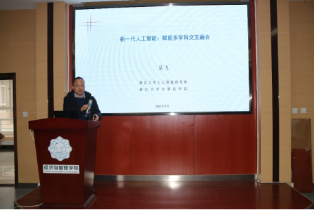 报告结束,李耀平书记对吴飞教授的精彩报告表示衷心感谢,并从哲学思维、学科交融和公司产品三个方面分享了自己的感悟。吴飞教授的报告高屋建瓴、深入浅出,使得与会师生加深了对新一代人工智能的认知,理解了人工智能的科学内涵和应用路径,为下一步人工智能与管理科学的深度融合打下了坚实的基础。