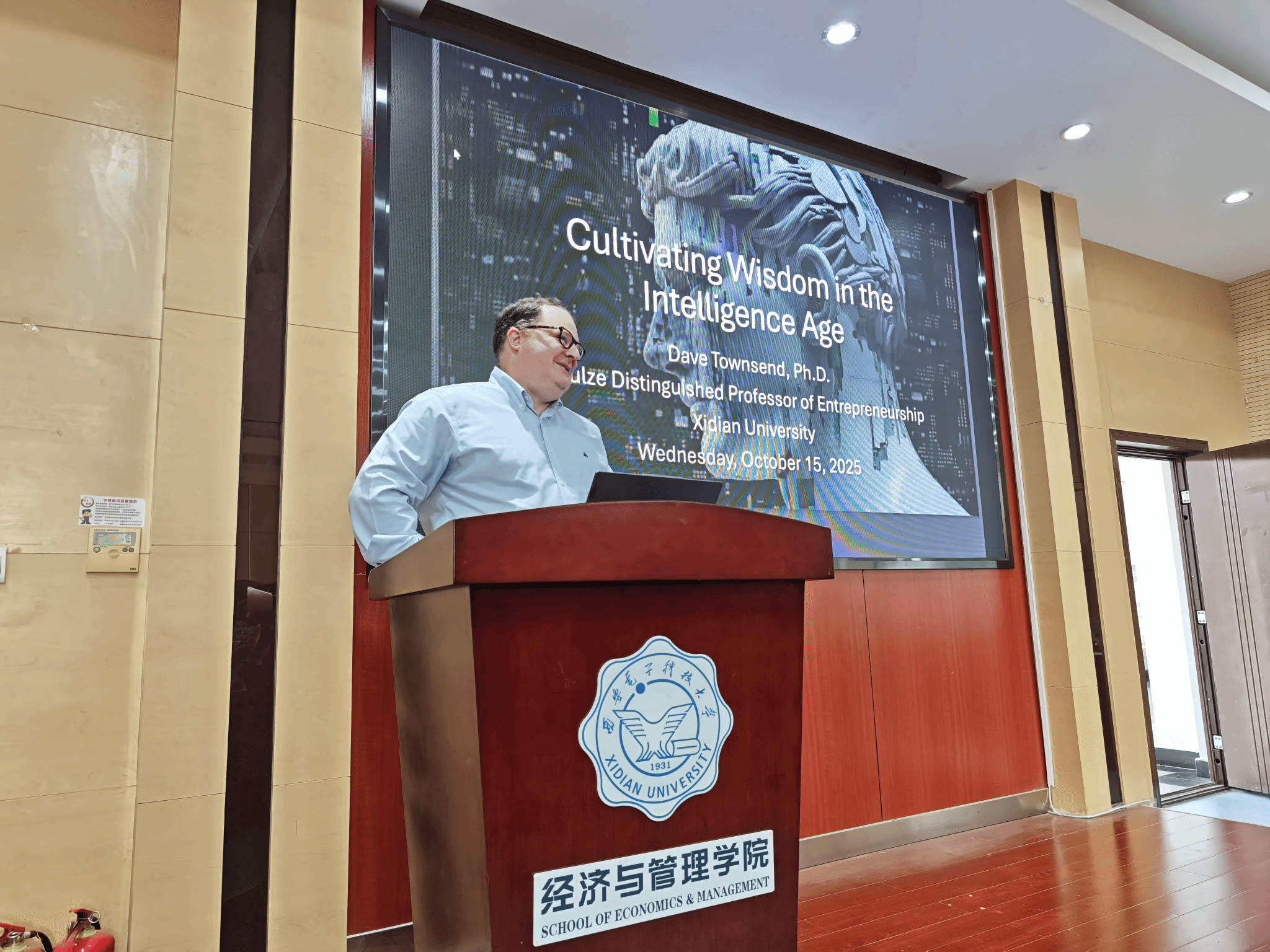 (通讯员 布紫欣)2025年10月15日上午,mjm世界杯官网于信远楼Ⅱ区324会议室举办了一场主题为“Knightian Uncertainty, Artificial Intelligence & the Paradox of Future Knowledge”的学术报告会。本次报告会特邀美国弗吉尼亚理工大学庞普林商公司管理学系副教授David M.Townsend担任报告人。本次报告聚焦人工智能与不确定性等前沿学术问题,吸引了众多师生到场聆听交流,现场学术氛围浓厚。Townsend教授首先从研究背景切入,...