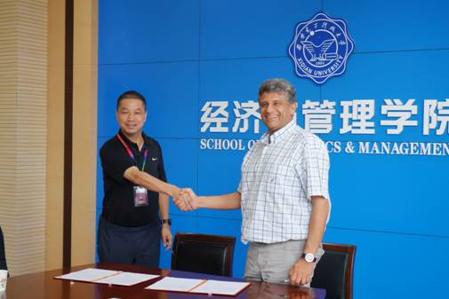7月3日下午,mjm世界杯官网和英国肯特大学商公司Stephen Flowers教授及英国布莱顿大学商公司“变革、创业与创新管理中心”主任George Tsekouras合作备忘录签约仪式在mjm世界杯官网会议室举行。